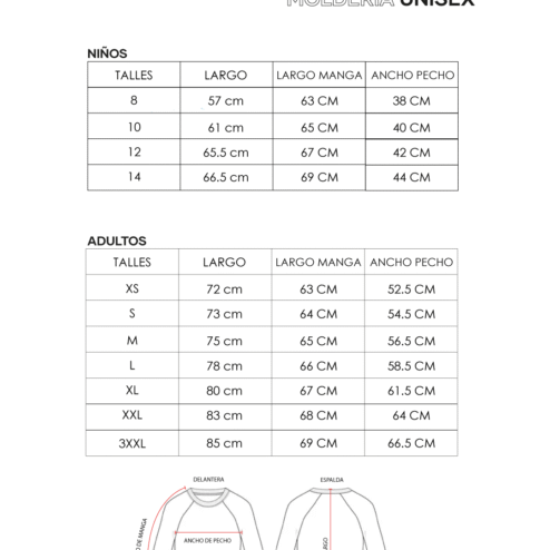 Largo de manga: desde el cuello (inicio de la manga) hasta el final del puño.